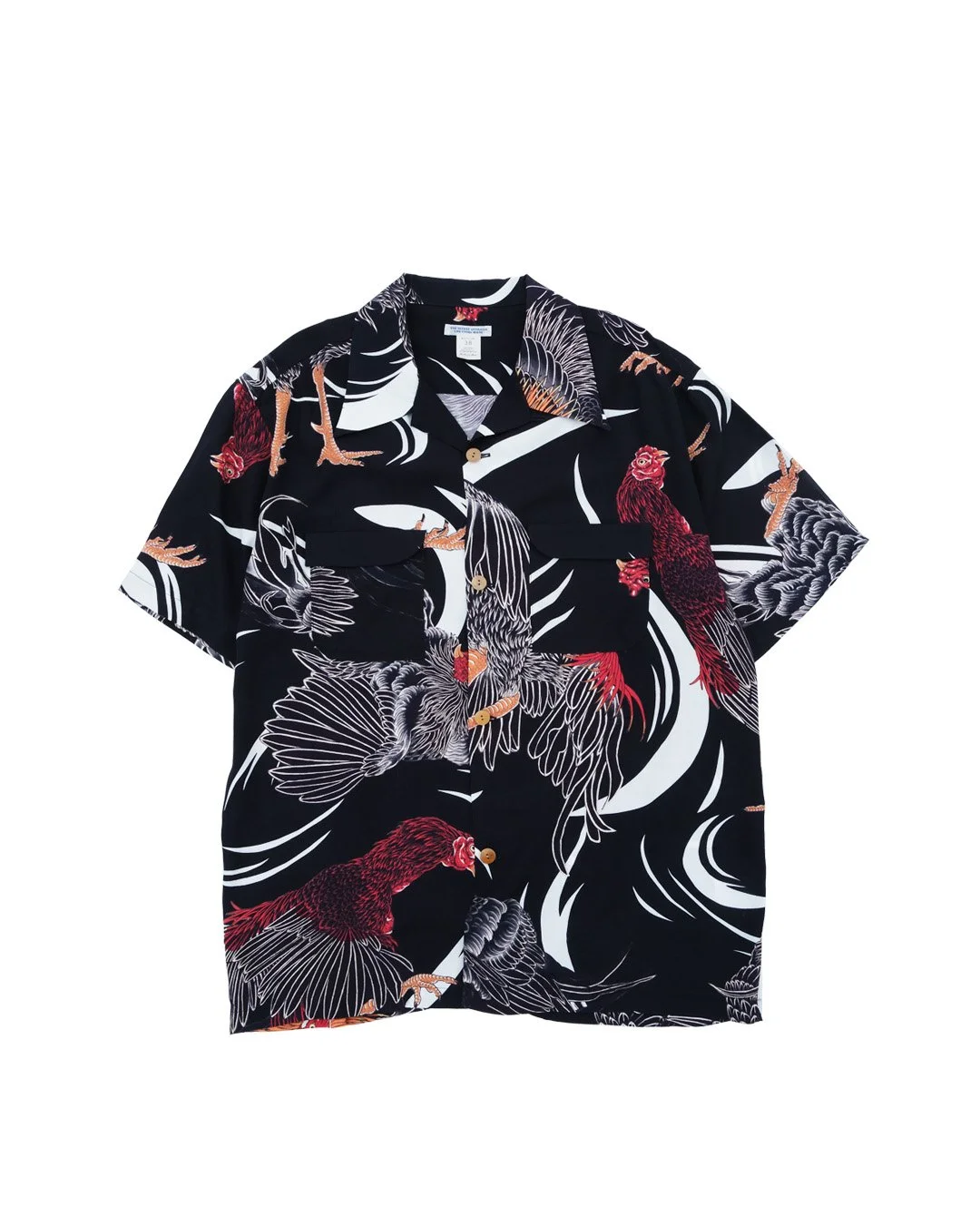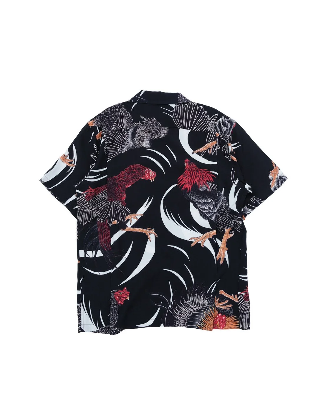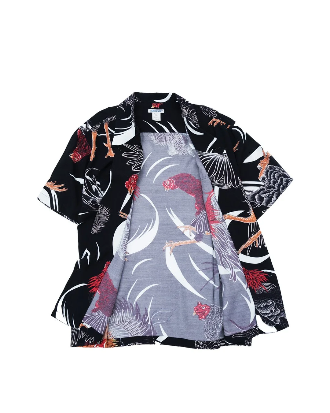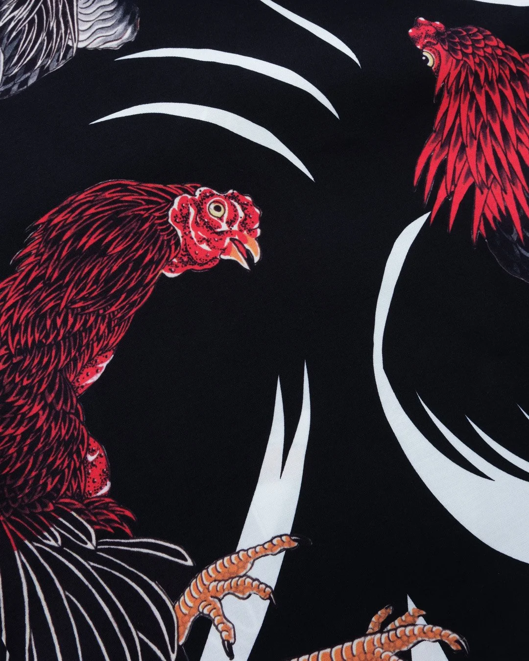 絵柄は、日本古来から行われている闘鶏の軍鶏を、彫師・彫渉さんに描き下ろしていただきました。力強いタッチで描かれた軍鶏が、一枚一枚異なる表情で大胆にプリントされている。背景には躍動感のある柄を配し、夏らしいエネルギー溢れるデザインに仕上げた。