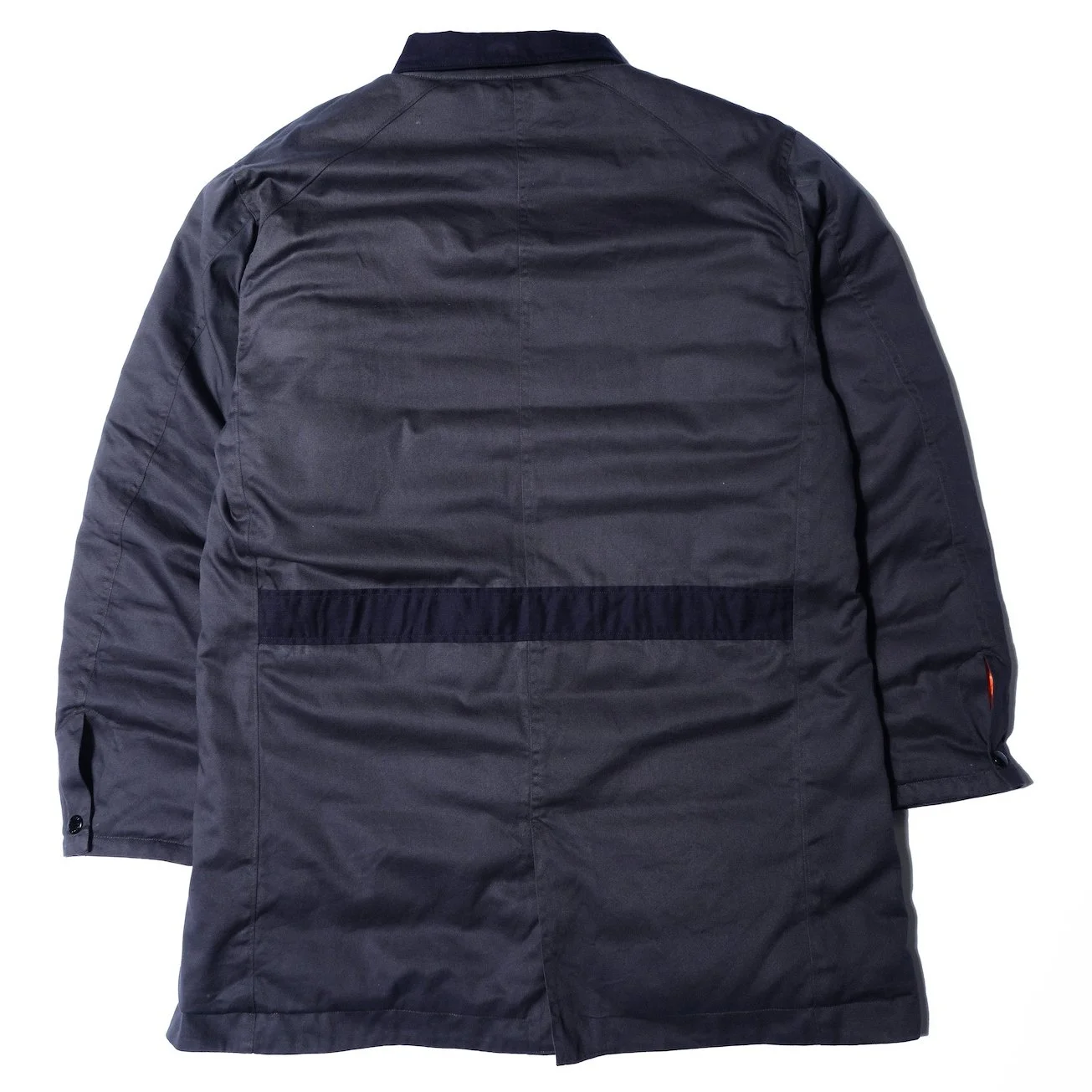 いわゆるアメリカの工場のエンジニアが来客時に羽織る物として作られたのがショップコート。このショップコートをベースに内側にダウンを入れ、見た感じよりも暖かくなる仕様に。襟元、ポケット口はヘリンボーン生地で強度を出した。見た目からは考えられないくらい暖かい逸品。