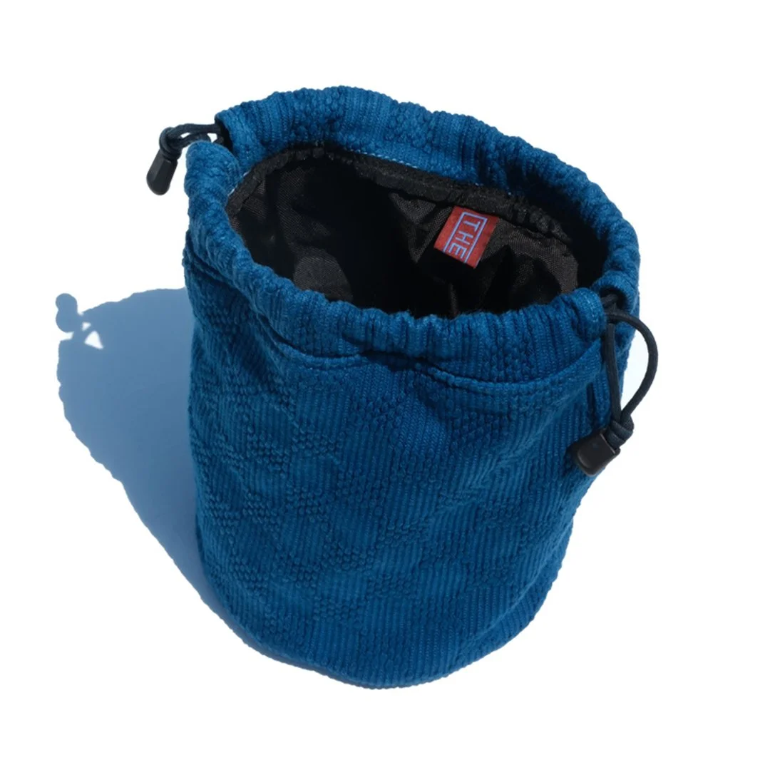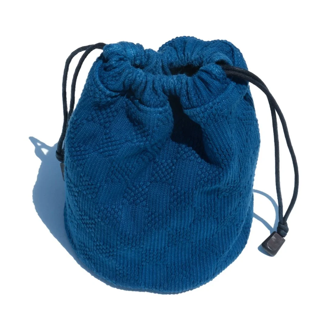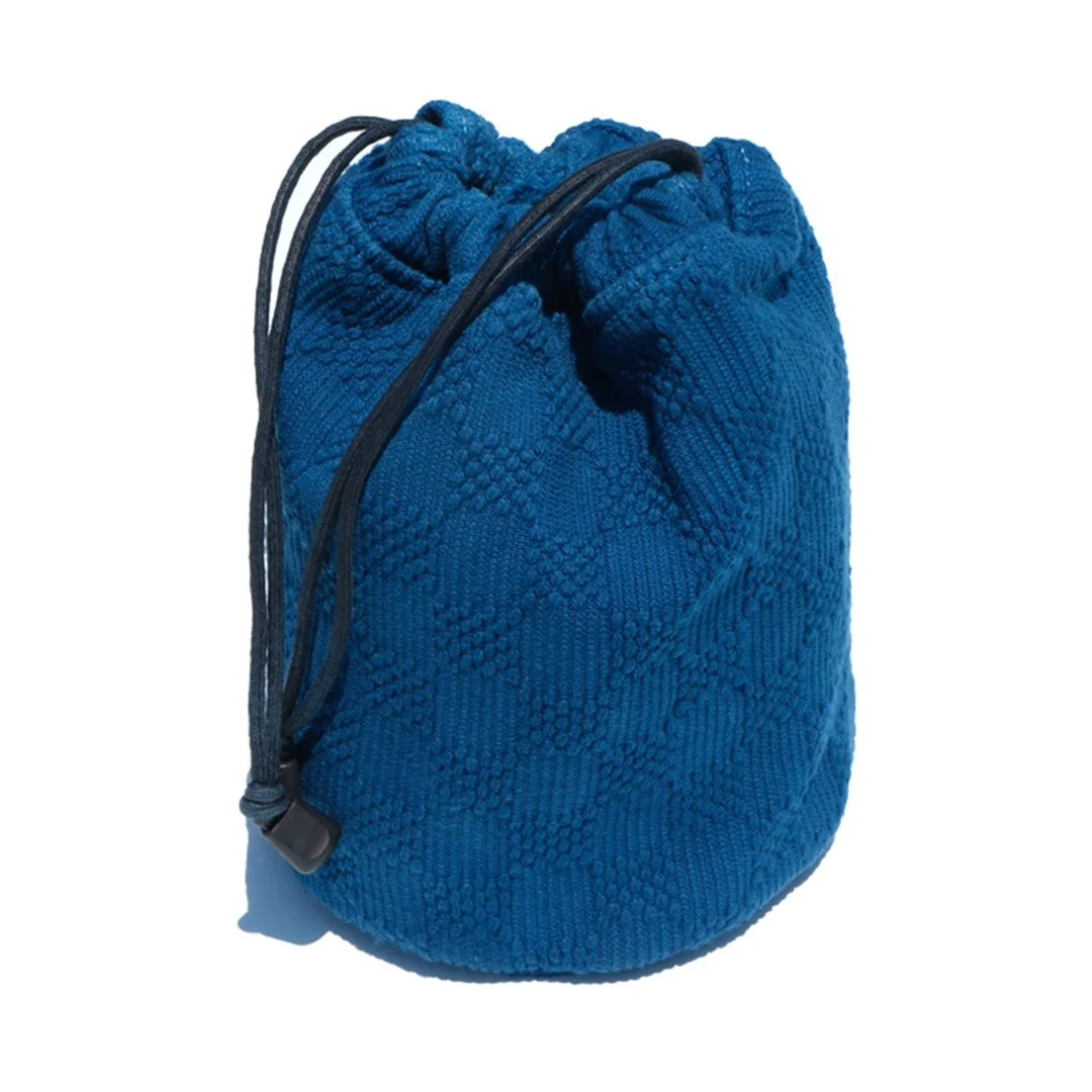 日本の代表的な生地である刺子を、今回は太い番手で織られた太刺子生地に市松模様を施し、岡山の伝統的なインディゴ染めで仕上げました。色目は薄い色と濃い色の2種類を使用。古来よりインディゴ染めは、害虫や蛇などの防虫効果があると言われています。大切なものを入れて守るという意味合いを込め、毎度好評の”THE KINCHAKU”の形に仕上げました。