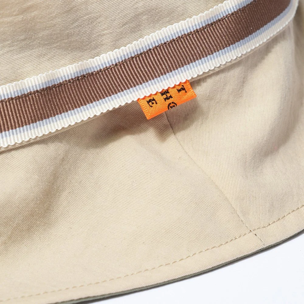 日差しが強くなるこれからの季節、自然と手が伸びるのがハット。なかでも、頭周りにテープが付いた、どこか“おじいちゃん”のイメージがあるあのタイプを、現代的な解釈で仕立てました。 素材には、春夏にぴったりな薄手のナイロンを使用。さらに撥水加工を施すことで、ちょっとした雨や水濡れにも対応できる頼れる仕様に。 特徴的なテープ部分は、見た目のアクセントであると同時に、内側のスナップボタン3つでサイズ調整が可能な機能パーツとして設計。フリーサイズながら、3段階でのフィット感の調整ができます。 くるっと丸めてポケットに放り込んで、気軽に持ち運べるのもこのハットの魅力。日常使いにぴったりな、気の利いた逸品。