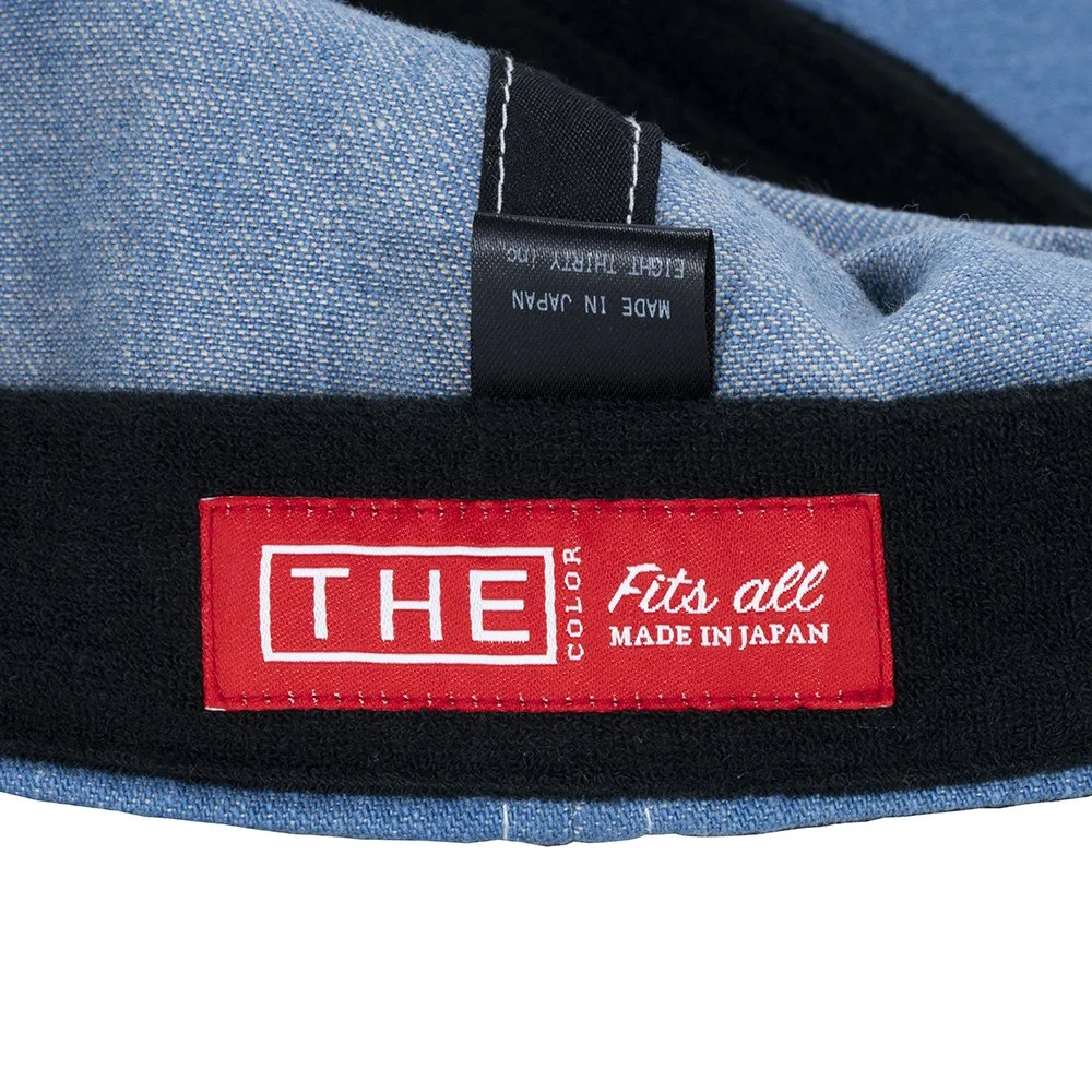 デニムボディに合わせ、空気穴の菊穴は金属ハトメ仕様。バックベルトには厚みのある牛革を採用し、重厚感と確かなホールド力を持たせた。THE COLORのキャップを象徴する特徴でもある、内側のパイル地スウェットバンドは今回も健在。被り心地が柔らかく、汗をしっかり吸い上げてくれる。