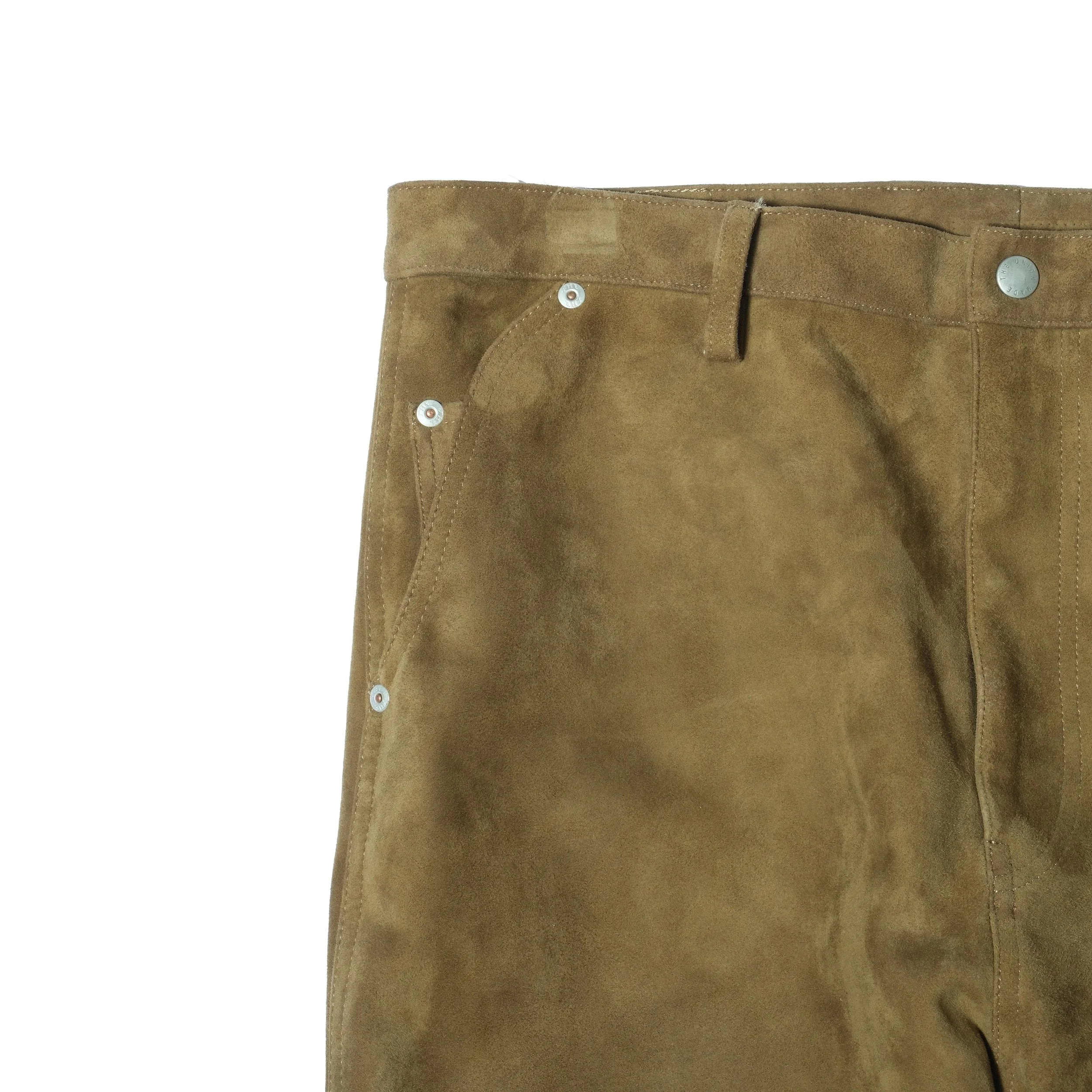 THE FABRIC produces leather items every year, but this is the first time they have released leather pants. The shape is based on THE BLUEST OVERALLS' standard painter pants with some slight changes, and the leather is designed to be easy to cut. The material itself is made of very soft "Silky Sheep" leather, so it is finished without the heavy and stiff feeling that is the disadvantage of leather pants. The M size is about 32 inches, the L size is about 34 inches, and the XL size is about 36 inches. The lining is made of cupra material down to the knees, so the leather does not stick to you and is extremely comfortable to wear. Unlike denim, leather pants have a unique stretch, so why not try stretching them out and wearing them? These are leather pants that you will want to try on at least once.